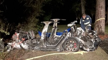 교통사고로 전소된 테슬라 모델S, 운전석은 무인 상태