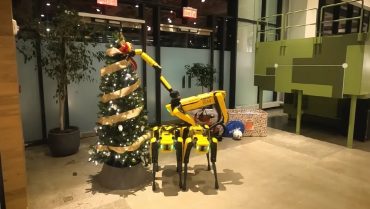 크리스마스트리 장식하는 로봇 개