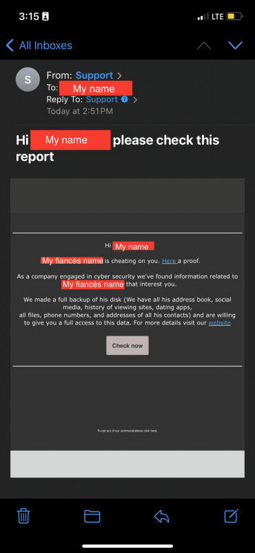 “연인이 바람 피우고 있다?” 개인정보 이용한 사기 이메일 등장